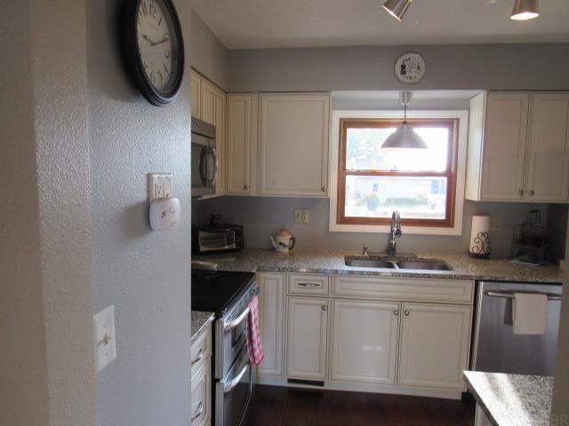 Multi Level home in a desirable neighborhood. New listing with three bedrooms on the upper level with a full bath that actually has a connecting door from the master. The main floor has hardwood floors with a galley kitchen that sports granite countertops, new appliances and updated cabinetry. The adjioning dining room has a slider that accesses a large wood deck overlooking the shaded and level backyard which also has a nice storage shed and plenty of room for gardening and play. The open living room has a ton of natural light and comfortable space. The next level down has a great area for a mudroom and also the laundry facilities and access to the attached 2 car garage. The lowest level features a large family room and yet another bathroom. Currently this family room is being used as a NON-conforming 4th bedroom. Compact and charming this new listing will grab your attention!